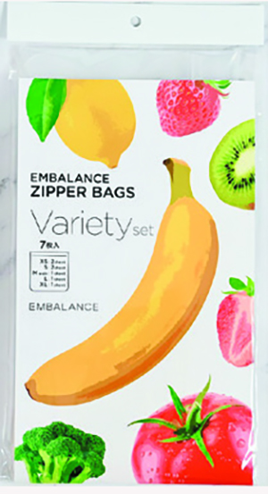 食品の鮮度保持効果がある特殊プラスチックを使ったエンバランスのジッパーバッグ。バラエティーセット(7枚入り/1,210円)を2名様に。