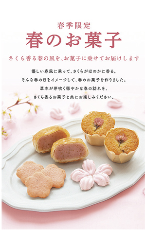 ピーナッツサブレーでお馴染みの千葉とみいに、春季限定のお菓子が続々と登場。中でもこちらのポスターの桜のお菓子4種は、手作業で細かく刻んだ桜の葉を使用し、豊かな香りを実現。ひと足先に、春を感じてみては?