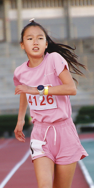 小学4年女子800㍍の1位は流山市の石射桃花さんで、記録は2分32秒89。「序盤でペースをうまくつかめず、600㍍あたりからきつかった」と反省するが、2位を10秒離してのゴールだった。小中学生の陸上クラブ「東葛RC」に所属し、目標は「中学生になったら、都道府県駅伝に出ること」だ。