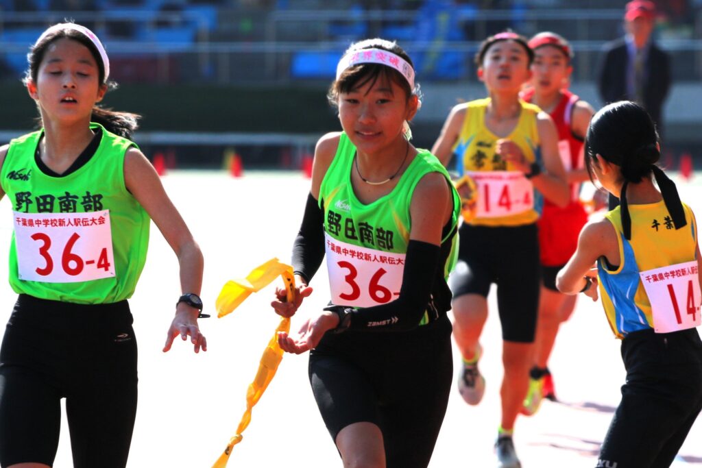 女子(5区間、11.50㌔)は野田南部が最終5区で首位と24秒差の3位から逆転し、39分53秒で初優勝。印西・木刈が2位、野田二が3位だった。男女各63校の1、2年生がたすきをつないだ。