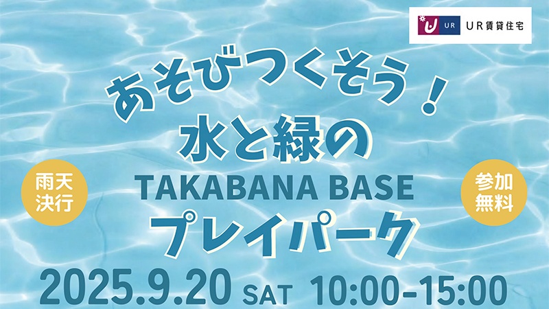あそびつくそう!水と緑のプレイパーク 9月20日に印西市で 2025.09.112025.09.12 夏の終わりに水遊びや収穫体験を楽しみませんか。そんなイベント「あそびつくそう! 水と緑のプレイパーク」が、9月20日、印西市のTAKABANA BASEで開かれる。 会場には、ミニプールや水鉄砲などが用意される「水のあそび」、収穫やワークショップを楽しめる「トマトの収穫・スワッグづくり」などのコーナーが開設される。CO2削減ゲームやコンポストキットプレゼントも。 主催はUR都市機構。午前10時~午後3時。