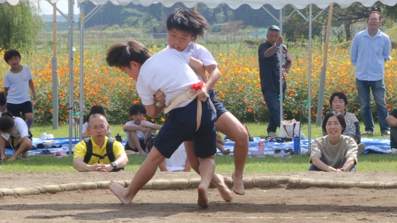 柏市の富勢地区に江戸時代から伝わる「八朔相撲」が、10月5日、地元小学生約40人が参加し、開かれた。