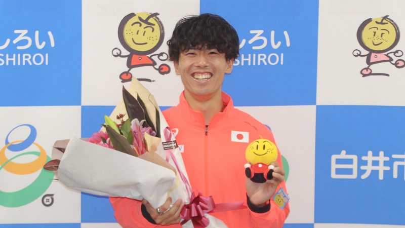 東京世界陸上の男子100㍍に出場した守祐陽選手(21)は白井市出身。今年8月に10秒00を記録するなど一気に注目を集め、世界の檜舞台に立った。10月14日に市役所を表敬訪問した守選手に、世界陸上で得たものや今後の抱負などを聞いた。