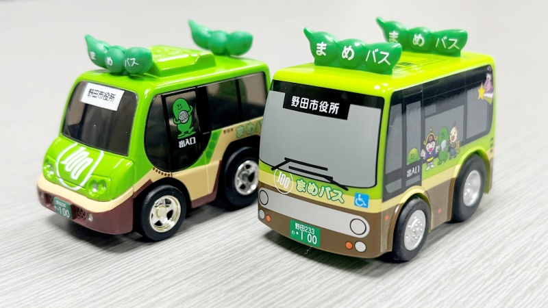 まめバスは、大人100円、小学生50円で乗車でき、2004年から運行を始め、現在の路線数は12。市はまめバスの利用促進と地元への愛着心を醸成しようと、まめバスのチョロQ(ゼンマイ式ミニカー)を販売することにした。09年には初代のボンネット型まめバスのチョロQを販売したことがあり、この時は当初用意した6000個は初日に完売、追加販売したことがある。
