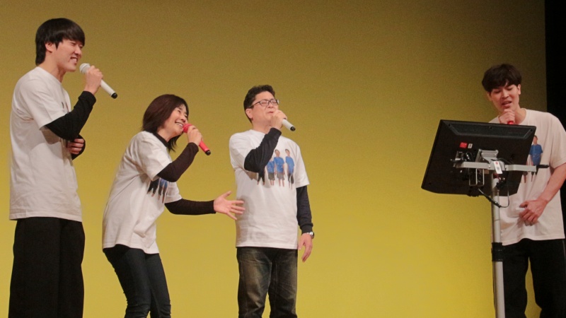 トップバッターは杉野さん一家。両親と長男、三男の4人で舞台へ。当初は子ども4人で出場したようと考えたが、1組4人までで、二男、四男は市外在住で出場資格がないため、「両親を口説き落として参加した」と長男の大樹さん(31)。家族の仲の良さが伝わる息のあったハーモニーで「アイノカタチ」を披露した。