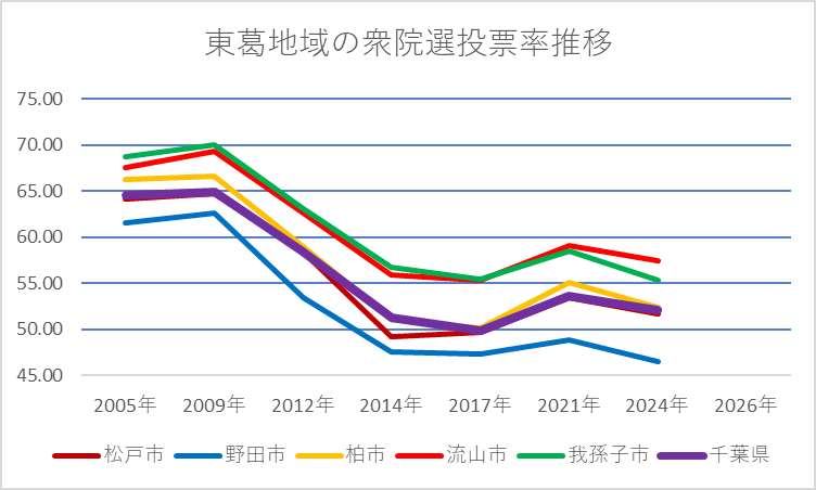 前回衆院選では、期日前投票をした人は、東葛地域で全有権者の17~20%、投票者数に占める割合は30~38%を占めるほどになっている。