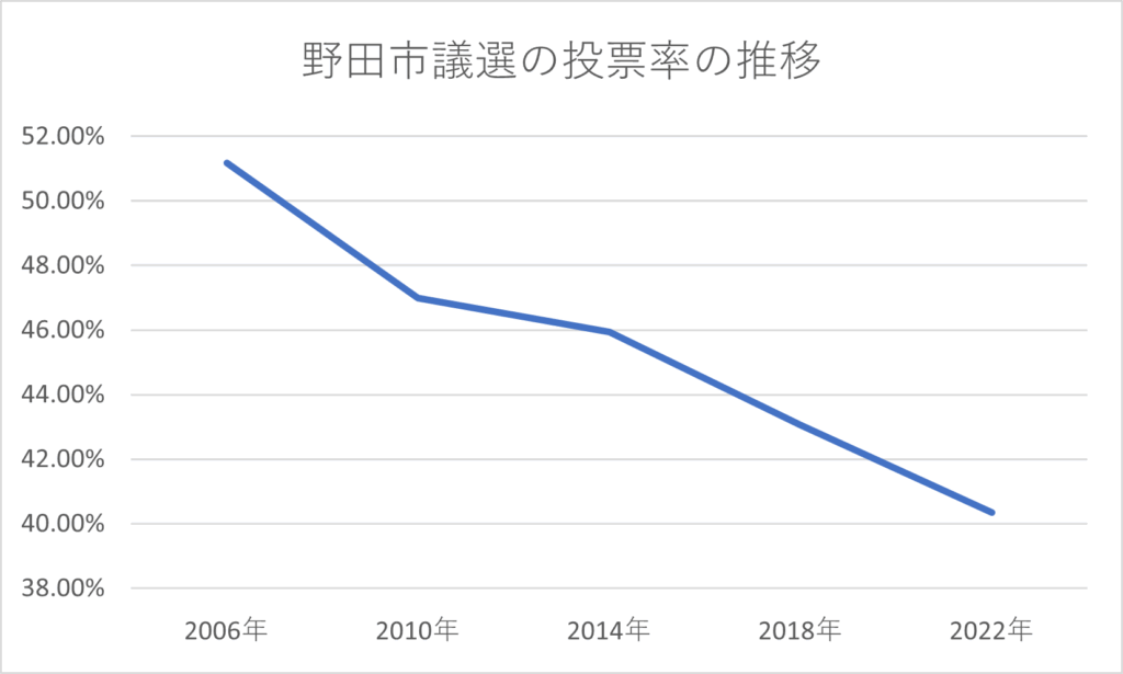 投票率は下がり続けており、前回は40.35%と、40%を割り込む直前まで落ち込んでいる。