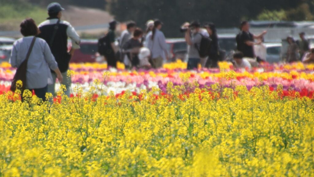 日中には家族連れが次々と訪れ、陽の光を浴びてより色鮮やかになったチューリップ畑を前に、「すごい」「きれいだね」と感嘆の声をあげていた。3歳と1歳の子どもと一緒に野田市から来園した家族は、毎年、チューリプを見に来ているといい、3歳の女の子は「黄色のチューリップが好き」と、笑顔をみせていた。