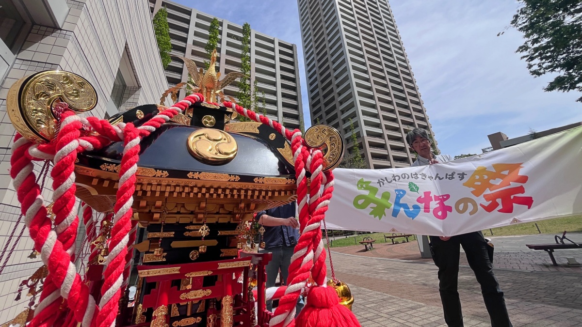 神輿が私たちの街にやってくる――。柏市のつくばエクスプレス(TX)柏の葉キャンパス駅周辺で4月25日、住民主催のお祭り「柏の葉キャンパス みんなの祭」が、初めて開催される。祭りのシンボルにと、近隣の自治会から神輿も借り、街を練り歩く。「一緒に担いで、柏の葉の街にオモロい祭りをつくろう」。担ぎ手も募集中だ。