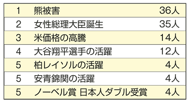 2025年の一番心に残ったニュースについて読者452人にご回答をいただいた。一番多くの声は「熊被害」。山から里に下りてきた熊たちとのこれからを、政府は冬眠中にしっかり策を練ってほしいですね。